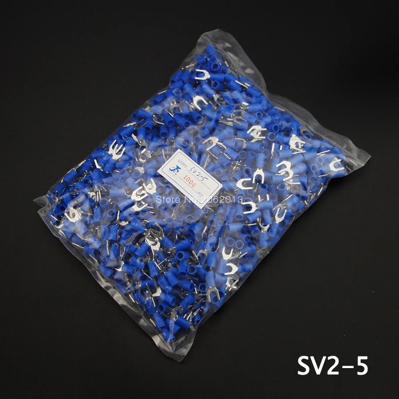 1000PCS SV 1.25 2 3.5 -(3 4 5 6 )Insulated Wiring Terminals Electrical Lug Crimp Terminal 1.5-2.5mm -4mm 16-14 A.W.G